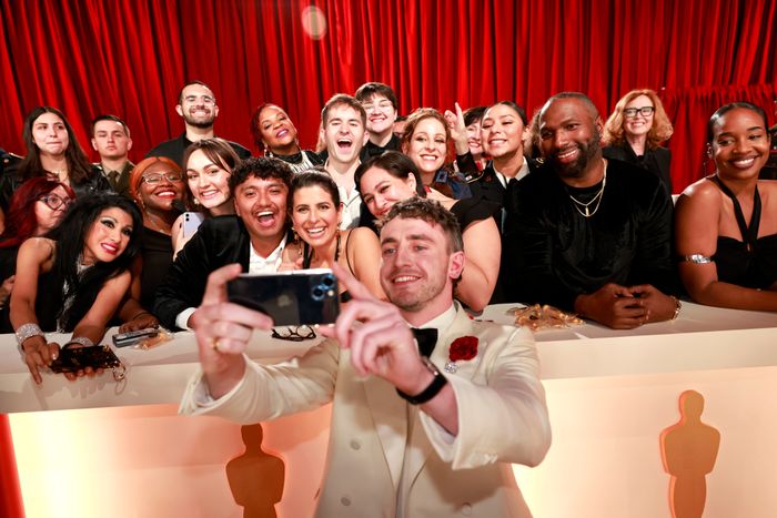 Days before the show, Kimmel told The Hollywood Reporter he didn’t “necessarily think” he’d be asked to host the Oscars again, but lo and behold, the Academy, creatures of habit that they are, invited him back to emcee the event for a third time. Kimmel’s monologue was, as expected, a snoozefest — he gave us little jokes about the rampant Ozempic use in the room, the lack of women directors nominated for Best Director, and Austin Butler’s ongoing Elvis schtick. Though Kimmel warned us in advance that some of his monologue would revolve around The Slap That Apparently Must Not Be Named, the bits were still particularly cringe. Two out of ten Champagne carpets.
